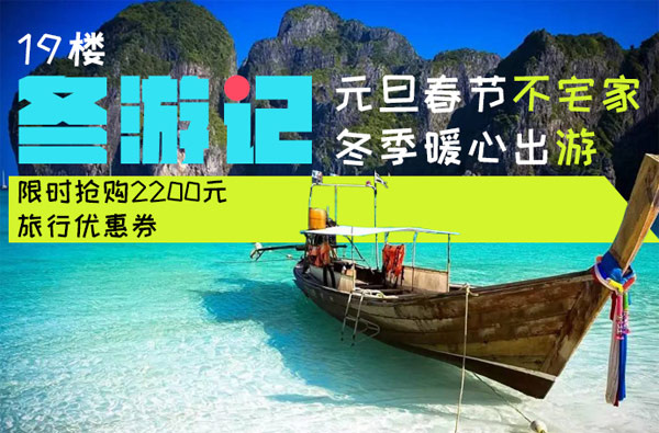 凡在12.15—31期间下单,满5000-9999元减200元/人,特价产品除外,两人报名送行李箱一个!