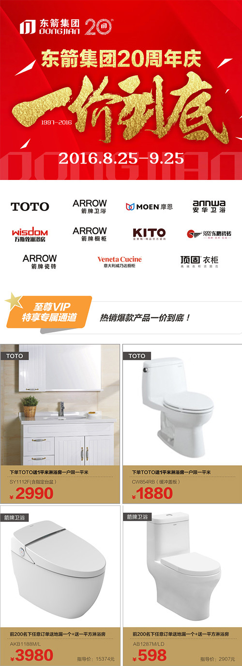 东箭20周年庆TOTO箭牌卫浴等多个旗下品牌一价到底