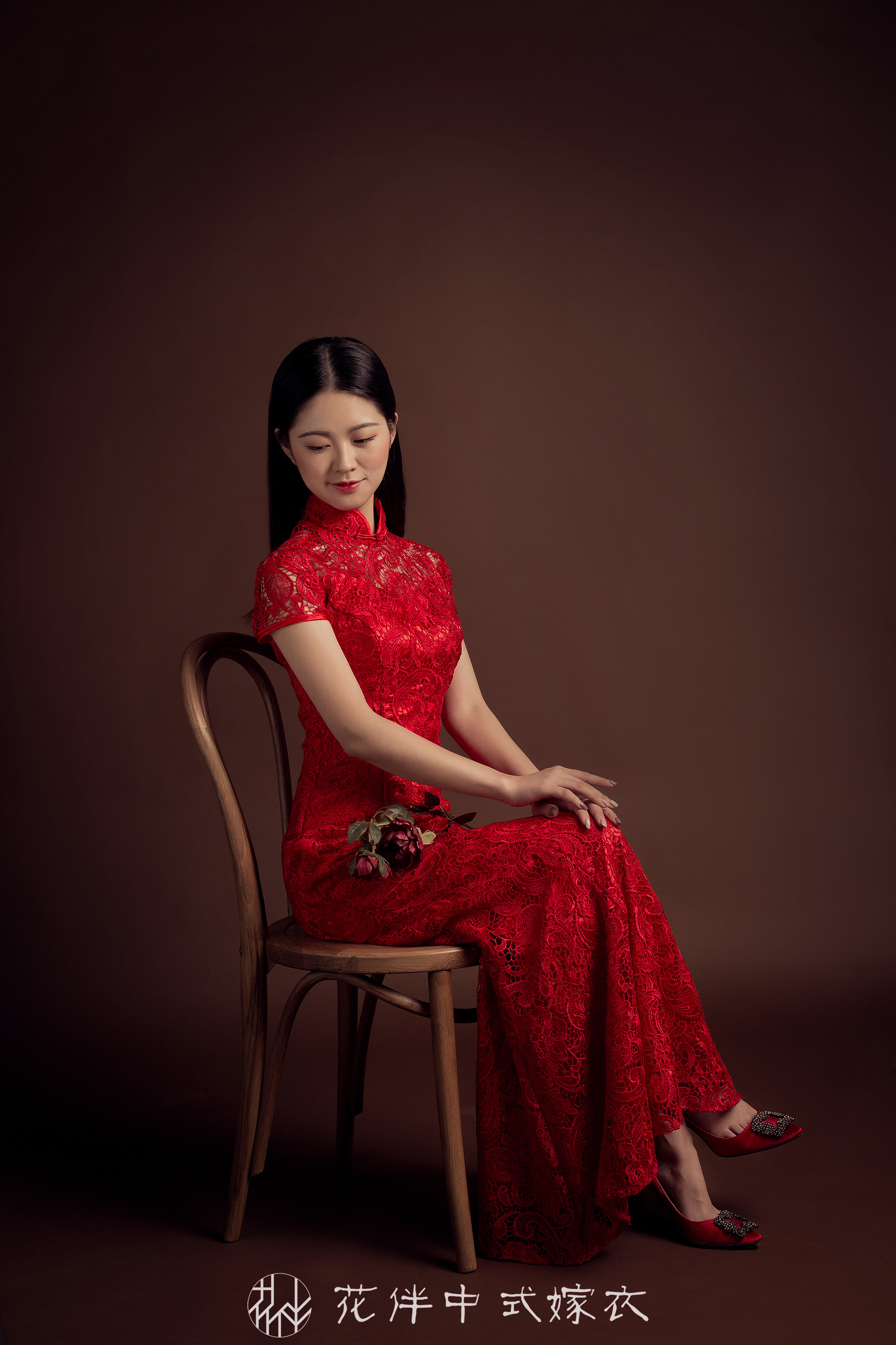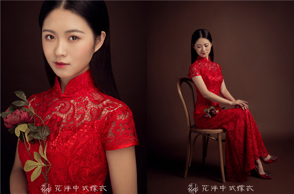 赠0元免租花伴中式蕾丝旗袍、免尺寸修改费用