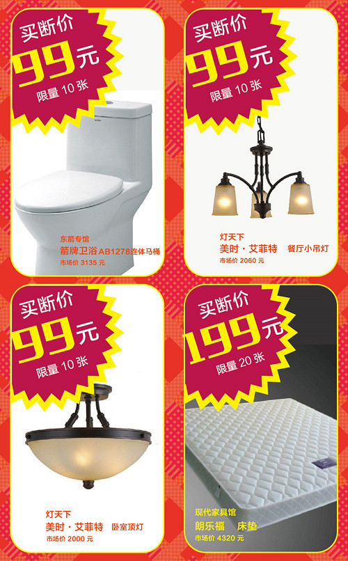 4.每天15:00/17:00 现场摇一摇:只要你在现场就可参与摇一摇互动,赢取MACBOOK、家居爆品、现金红包等精美奖品。每天15:00灯天下,17:00定制馆准点开始!